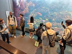 秋の校外学習に行きました。目的地までの移動中は、バスレクで盛り上がりました。東京の葛西臨海公園(水族園)・日本科学未来館・お台場で、見学や体験をしながら1日を過ごしました。グループ別で行動をして交友を深めるとともに、実行委員やレク係、しおりづくりなどの仕事で生徒の活躍の場面が見られました。 |