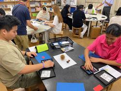 美術では、秋にちなんで栗を描きました。 栗の実物を見ながら、パステルと色鉛筆で栗のイガを表現しました。 次の時間は、タブレットでこま撮りのアニメーションをつくりました。 友達同士でポーズをとったり、ペットボトルキャップを並べて動かすなど、生徒たちは工夫しながら楽しんでいました。 |