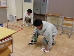 4時間目に校外学習の振り返りをした後、月イチ清掃を行いました。 今回は、体育の授業で使用したマスキングテープのはがし跡の清掃に重点を置きました。 みんなで協力して、きれいにすることができました。 |