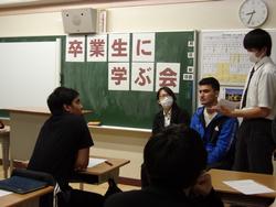 みらい分校の卒業生4人を招いて、卒業生に学ぶ会が開かれました。 高卒認定の話や通っている高校の話を聞くことができました。 生徒からは「みらい分校を卒業した後の進路はどのように決めましたか?」などの質問が出ました。 生徒たちにとって、自分の進路をより深く考える機会になりました。 |