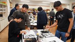 今日は、習字で「成功」という文字を練習しました。習字が初めてで、筆づかいがたどたどしい姿の人。習字が得意で迫力のある字を仕上げた人。新年には、「2026年の抱負」を書き初め用紙に書く予定です。 |