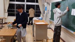 今日の4時間目は、2学期のまとめとして2学期を振り返ってのスライド上映がありました。生徒たちは、こんなこともあったのかと場面場面で声を上げていました。そのあと2学期にがんばったこと、3学期にがんばりたいことを各自書きました。その後の月イチ清掃は、人数の少ない分担箇所もありましたが、それぞれが取り組む内容を考え短い時間の中で精いっぱい活動しました。 |