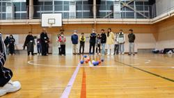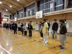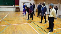 スポーツレク大会が開かれました。7月は校庭でグランドゴルフをおこないましたが、今回はボッチャの対抗戦で勝敗を競いました。このレク大会は、みらい分校の生徒だけでなく、地域の皆さんにも参加していただいて交流を深めています。さらに松戸市スポーツ推進委員さんにコートの準備や審判をしていただいています。微妙な判定に目をこらし、勝敗の行方で歓声が上がっていました。 |