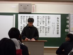 長い2学期も終業式を迎えました。文化発表会の練習の成果か、校歌の声も大きくなったようです。各学年の生徒からの振り返りでは、行事の体験の思い出や日本語の学習の成果が語られました。校長先生からは、「校外学習や文化学習発表会の取り組みを通じて、自分たちの力で行事を作っていくんだという姿がみられてとてもよかった」というお話がありました。 冬休みは、健康や安全にくれぐれも気を付けて過ごしてください。 |