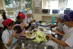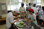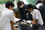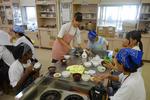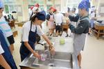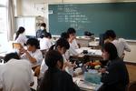 日常の授業が戻ってきましたが、昨日のコンクール疲れが表情に出ている感じがありました。 2年生の家庭科では調理実習をやっています。 |