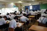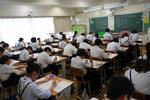 3年生は進路選択にあたって、大切な指標となるテストです。1・2年生は現在の到達度をはかるテストです。皆真剣に取り組んでいました。 |