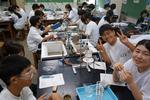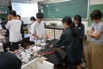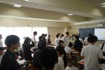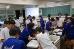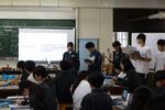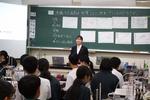 3年生の体育、ソフトボールの様子です。活気のある授業風景でした。 2年生数学の授業です。動点の問題に挑戦していました。四角形の辺を点が動くとき、三角形の面積を求める問題です。活発に意見を出し合って、学び合いが見られました。 2年生社会の授業です。日本史、「織田信長を5段階評定をつけるなら」というテーマで、経済面や戦略面などをABCで評価し、その理由を発表し合うと、それぞれ違った意見が出ていて、とても深い学びになっていました。 1年生の掲示物です。校外学習に向けて、しおりの表紙絵コンテスト、探求テーマ一覧、実行委員紹介が掲示されています。松戸市との違いについて各班のテーマで探求的な学習を進めています。 1年生の理科です。エタノールの沸点を調べることで、物質の違いにより沸点も違うことを見出すのですが、今回も教科書とは違う結果が出ている班があり、その理由を考察するのが楽しかったです。 3年生の理科です。ダニエル電池の実験です。半透膜がポイントですが、目に見えないイオンや電子の動きを考察するのに苦労していました。 教育実習最終日、実習学級の1年5組では、ささやかながらお別れ会。合唱コンクールで歌った「怪獣のバラード」を涙ながらに歌う生徒もいて、別れを惜しんでいました。3週間の短い実習期間でしたが、避難訓練、合唱コンクール、通知表配付、駅伝壮行会などイベントは盛り沢山でした。思い出を胸に、採用試験頑張ってください。数年後には教壇に立つ姿が見られることを期待しています。 |