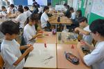 9組朝体育の様子です。日光の下で元気に体を動かすことで、リズムを整えています。英語の授業ではフォニックス、文字と音のイメージを繋ぐことで、単語を読む練習をしていました。