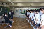 今日は霧雨が時々降る肌寒い午前中でした。「寒い~」と言いながら元気に校庭に出て、体育の授業で、ソフトテニスとソフトボールに分かれて1年生が頑張っていました。 9組理科の様子です。Aグループは一中の植物の観察(秋)でした。Bグループは天気について記号を自分たちで考え、実際に使われている記号と照らし合わせて学習しました。 10組英語の授業です。スティービーワンダーの歌「I Just Called to Say I Love You」をみんなで歌って、雰囲気を高めて授業のスタートです。 3年生は面接での受け答えについて学んでいました。昨日の第2回進路保護者会で校長先生がお話した通り、現在3年生の校長・副校長面接を昼休み・放課後で進めています。入退室の立ち居振る舞いから、しっかり練習を積んで、本番の緊張の中でもしっかり受け答えができるように準備しましょう。 3年生の英語です。今日はLATが来校して授業をしてくれました。ネイティブの発音、それだけで気分が揚がり楽しくなります。 3年生の数学です。関数の単元ですが、図形が動いていく重なりの部分の面積を求める演習問題です。難しい課題でも、気づきの発言がいくつも聞こえていました。 2年生の理科です。ペットボトルとゴム風船、ストロー等で工作して、横隔膜と肺のつくりについて学習していました。横隔膜は焼肉では「ハラミ」です。仕組みを知るとともに色んな知識が結びつくと良いですね。 1年生の数学です。関数について学んでいますが、個別の課題にあわせて、自分で取り組むもよし、グループで教え合うもよし、和気あいあいと学習を進めていました。黒板に向かっての一斉授業と違い、個別最適な学び、協働的な学びを意図的に設定していました。 1年生の音楽です。合唱コンクールで講師の長谷川教頭先生から教えていただいた、口を大きく縦にあけて、高い場所で響かせる練習をしていました。耳の下に指をあてて、へこんでいるのを確認しながら歌っていました。さらに響く歌声目指して、頑張れ一中生! 1年生の帰りの会、合唱コンクールも終わったのにやけに合唱練習に熱が入っているな?と思ったら、次の音楽の授業で歌のテストがあるらしいです。緊張を乗り越えて頑張れ一年生! |