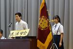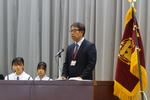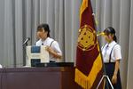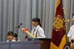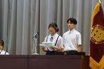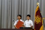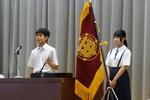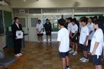 駅伝壮行会後のエキシビジョン走は雨の為、中止になりました。朝練習では襷リレーの練習をして、気持ち+身体への刺激を入れていました。 3校時に教育実習生の精錬授業を行いました。「物質によって沸騰する温度はきまっているのだろうか?」エタノールを湯煎して温度を記録しながら実験をしていました。予想と違う結果が出た班もあり、まとめ・考察が興味深いものになりそうです。3週間の教育実習も明日が最終日となります。 5校時、3年生は進路集会を教室でリモート配信形式で行いました。先日の進路保護者会でも説明した内容のうち、重要部分にスポットを当てて、重点的に説明しました。前期の通知表の成績、調査書用の成績などの説明もあり、皆真剣にメモを取って聴いていました。 6校時、東葛駅伝壮行会を体育館で行いました。生徒会本部役員の司会進行、吹奏楽部の演奏、美術部の横断幕作成、全校生徒が代表選手たちを応援しました。壮行会の中では、各選手たちの紹介動画、決意表明、生徒会長からの激励、応援時の注意、校長先生からの一中駅伝部伝統の襷・激励の言葉が送られました。夏休みから練習を重ねてきた選抜駅伝部も、18日(土)の東葛駅伝で区切りを迎えます。10人のメンバーとして走る選手、体調不良に備える補欠選手、選手をサポートするメンバー、それぞれが全力を尽くすことができるように全校生徒・全職員で応援しています。 |