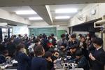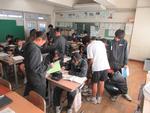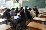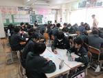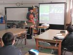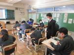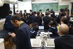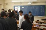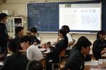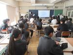 午後は2年7組の公開授業が行われました。理科「天気とその変化」の単元の「第2回中間発表」でした。市内各学校から大勢の先生方が見学に来ていました。第1理科室、生徒より先生方の方が多いくらいで、驚きの光景でした。授業の中で行われる生徒のプレゼンテーションの上手さに感心されている先生方がたくさんいました。教科書をしっかり読み込んで内容が理解できている生徒の発表はかなり分かりやすく、聞いている側も納得のプレゼンテーションでした。さらに良いものにするために評価を入力する作業も慣れたものでした。生徒下校後には先生方の部会が第2理科室で行われていました。