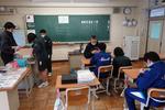 放送での始業式です。教室では真剣な表情と姿勢で校長先生の話を聴いていました。各教室での無伴奏校歌も今回が最後となるはずです。早く体育館工事が完了して、全校生徒が声を合わせた校歌が聴きたいです。生徒会からの話は、別ページに掲載しました。