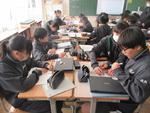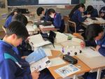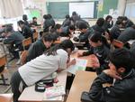 2年生の理科では「天気とその変化」の単元では、2学期後半からグループ別学習を進めています。今回はグループ内での中間発表をしていました。わかりやすく発表するにはどうしたらよいのかをお互いにアドバイスし合っていました。「文字が多いから読むのが大変」「要点だけを大きく表示すると良い」「字の色を変えて強調すると見やすい」など、発表の質を高めようとしています。学習内容も、教科書をよく読みこんでいるため、かなり深まってきているようです。人にわかりやすく伝えるためには、まず自分が深く理解することが大切なことを改めて実感したようです。