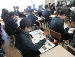 一中の朝が始まりました。朝清掃は自分の分担に集中して黙々と心を込めて取り組みます。終わると自席で読書の時間です。学校全体がシーンと静まり返って、誰もいないような時間が流れます。生徒に「朝読書は好き?」と聞いてみると、「心が落ち着いて、気持ちがいい」「好きな本に集中できていい」という声が返ってきました。本の世界に入り込むこと、また字に触れること、これらは読解力という全ての学びの基礎となる力を育てるのに役立ちます。3年生は残り2か月半の中学校生活です。卒業しても読書の時間をもてる生活を送って豊かな人生にしてほしいです。