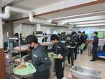 2026年の給食はじめです。今日はお正月メニュー、七草わかめご飯(春の七草)、鰆の西京漬け焼き(春の魚)、キャベツの昆布和え(よろコンブ)、白玉雑煮(祝のかまぼこ入り)、みかん(だいだい:代々栄える)、牛乳でした。みんな笑顔で給食を楽しんでいました。