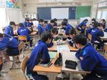 1年生の理科では、電流の単元で「回路」を学んでいるクラス、音の単元で「ストロー笛」を鳴らそうと苦労しているクラスの様子です。