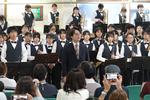 相模台小を会場に防災フェスタが行われ、吹奏楽部が演奏して会場を盛り上げていました。 |
