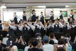 プラーレの屋上で「音の祭典」が行われ、吹奏楽部が演奏を披露しました。市内の中高が招待されており、第六中、市立松戸高、松戸六実高も参加していました。笑いあり、ダンスありの楽しいステージでお客さんたちから大きな拍手をいただきました。 |
