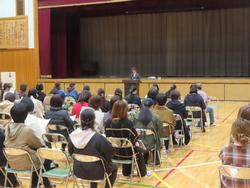 4月16日(水) 年度始め保護者会 14時30分から年度始め保護者会を開かせていただきました。全体会後には3学年は学年懇談会で修学旅行の費用等の説明、2学年では、「宿泊学習」についての説明も含め、ご挨拶をさせていただき、1学年は、学級懇談会を開き入学後の様子をお話しをさていただきました。多くの保護者に来校いただき感謝いたします。 《校長挨拶からの抜粋》 年度始めですので、多くのお願いごと等させていただきます。 ・学校行事等、徒歩の来校をお願いしたい。行事によっては、駐輪場を設けない場合もあります。 ・メール・スクリレの登録100%を目指します。災害時等、周知度の高いものはメールで配信します。登録へのご協力をお願いします。 ・いじめ、人間関係のトラブル等、早期発見・早期対応が必要です。何か気づいたり、心配なことがあれば早目の相談をお願いします。学校とご家庭で連絡が取れる体制をお願いします。 ・災害時 震度5強で引き渡しとなります。家の安全、保護者の安全を確認後、慌てずに来校してください。 ・本校の勤務時間 8:10~16:40 最終下校1時間で留守電話となります。 勤務時間内の対応へご理解とご協力をお願いいたします。 今年度も本校、教育活動へのご理解ご協力をお願いいたします。 |