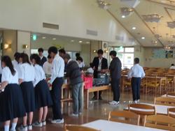 | 着替えて 朝食 | 配膳は、先生方 | 食欲旺盛! | 退所式 感謝! |