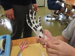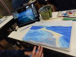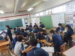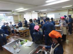12月2日(火) 新しいタブレットに入れ替えが終わった2年生では、各教科での活用が進んでいます。少し大きくなり、見やすくなりました。机のスペースの使い方に工夫が必要です。 2年美術の水彩画も仕上げに入っています。色の濃淡を繊細なタッチで表現しながら完成度の高い作品に仕上がっています。7組の理科では、「体のつくり」をテーマに、自分の手のサイズの模型を製作し、関節の動かし方を学んでいました。ジャンケンもできます。2年家庭科で「鮭ときのこのホイル焼き」の調理実習を行いました。「フライパンの水の量は、大丈夫?」「ホイルの中の鮭は蒸されている?」と声をかけながら取り組んでいました。試食では、「おいしい」と声があがっていました。 |