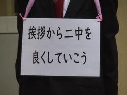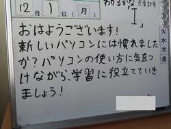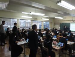 12月3日(水) ノー部活動デーの朝、部活動部長会のメンバーが朝の挨拶運動を始めました。任命式から2年生のリーダーたちが「動く」ことを実行してくれています。この活動から、各部活、学年、学校全体へ意識の広がりが生み出せるか楽しみです。 市教委の学習指導課が二中の学習を視察に来校されました。「どの授業もICTを活用した場面がありタブレットを使いこなしていますね。」とお話しされていました。タブレットを学習道具の一つとして個々の学びをどう深めていくために使えるかこれからの課題です。 2年生国語も書初めに入ったようです。今年は「初春の喜び」です。白い半紙の上にバランスよく心を込めて一筆を書けるか。同じ字でも一人一人が表現するものは違います。自分の書を追求してください。 |