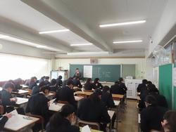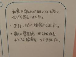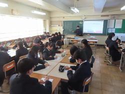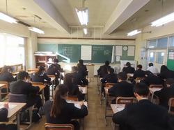 1月8日(木) 全学年到達度テスト 3学期2日目は、全学年で到達度テストを実施しました。3年生は、高校入試前のプレテストとして、腕時計・消しゴムカバーなし、三角定規まで本試験に合わせた確認を行いました。1年生も定期テストと合わせて4回目のテスト、試験の受け方もしっかり身についてきました。 6時間目は、1,2年生で防災学習として「防災クロスロードゲーム」をグループワークで行いました。大人がいないときに災害にあった場合、命を守るために、自分で情報を集め判断しなければなりません。そのために、知識を持つことが大切です。今日の学びは、とるべき行動について考える機会となったと思います。これからも二中全体で防災意識・知識を高めていきます。*PTAが準備していただいている生徒用備蓄品について説明を行いました。 今日から給食がスタートです。1月の給食では、2年生の家庭科で作成した「中学生に必要な栄養を満たす食事」の献立の1部が実施されます。今日は、2年1組2班の和食を楽しめるお正月をイメージした献立でした。3学期の給食もとても楽しみですね。 |