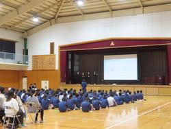 11月8日(土) 第1回 オープンスクール 今日は、在校生の保護者、小学生、小学生の保護者を対象に、学校を公開いたしました。午前中は授業、午後は通常の部活動を見学していただきました。 3年生は、最後の授業参観になり道徳の授業も実施しました。7組では、「仕事人の話を聞く会」をテーマに保護者や学校職員から話を聞きいろいろな仕事があることを学びました。 2年生は「質問力を高めるために」について、学級代表よる発表会を開きました。プレゼン後の質問も以前に比べ多くの手が挙がるようになり活発に質疑応答がステージとフォロアーで行われていました。大きな成長です。そのなかで、質問力を高めるためには、知識の必要性がどのクラスからも指摘されていました。最後の班は学力向上まで深めていました。学んだことを実践しょいていき質を高められるかが次のステップです。2年生の進化が楽しみです。 午後は、2時間ほど部活動を見学できる時間を設定しました。練習環境や内容、各部活がもつ雰囲気等知っていただける機会になれば幸いです。 第1回オープンスクールに多くの方に来校いただきありがとうございました。生徒にとっても学校職員にとってエネルギーをいただける大きな機会になりました。今後も二中の教育活動へご理解ご協力をお願いいたします。 1月に第2回オープンスクールを予定しています。二中入学予定の方は、入学前にぜひ二中生に会いにきてください。 |