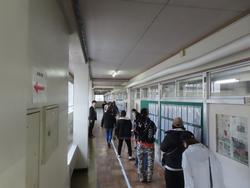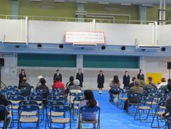 11月26日(水) 今日は青空が広がっています。テストが終わった3年生は、各教科の学習が進められています。7組、数学の学び個別に取り組んでいました。自己の学びに集中していてとても立派です。 3年技術の金工「キーホルダー」作成も個々のペースで進んでいるようです。細かい作業を丁寧に行っていくことが求められます。1年音楽では、リズム打ちの学びに入ってようです。音楽に合わせて手拍子を行います、クラス全員がリズムに合わせて手拍子が揃うと「うわー」と喜びに声も上がっていました。 生徒会室前の廊下に、新生徒会のポスターが貼られていました。自治活動をどう展開していくのかとても楽しみです。生徒会・委員会・学級・学年が「自立」に向けて何を作り出すのか・・・ガンバレ!二中!! |