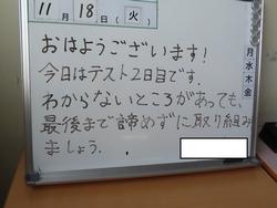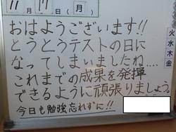 11月18日(火) 定期テスト2日目、登校後は、各自でテスト学習に取り組んでいます。少し早めに登校し30分行う二中生もいます。 今日は、午後から市内一斉引き渡し訓練でした。二中では、昼休み後に地震を想定した避難訓練から引き渡しまでのプログラムを実施しました。14:00からの引きお渡しでは、多くの保護者の協力をいただきありがとうござます。災害は、いつ起きるかわかりません。今日の訓練から出た課題を改善し備えていきたいと思います。 *震度5強の地震が発生した場合、メール等で連絡できない場合も想定できます、連絡がなくても、安全を確認後引き渡しにきてください。 |