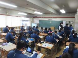 11月20日(木) 2年生のキャリ学習として、「千葉県で働く人から学ぼう」をテーマに「ちばで発見!!職業間育成コンテンツ」(17業種)から個々で3業種を選択し視聴、その後、心に残った仕事に関する話などをまとめていました。ヘッドセットを活用し、集中して視聴しています。どんな仕事を選択したかな。 3年生は、到達度テストです。問題を解く背中に「ガンバレ!!」と心の中でつぶやいてしまいました。 1年体育は、陸上競技の長距離走に入りました。長距離のライバルは自分自身です。自分のタイムをどう縮めていけるかを考え、練習することが学びです。フォームを改善することで走りやすくなったり、呼吸の仕方を工夫したりと仲間と意見を出しながら、自分の進化を楽しんでほしいです。体育終了後のうがいと水分補給、汗の処理も学びの1つです。 今日から新しいLATになりました。これからの授業が楽しみです。 |