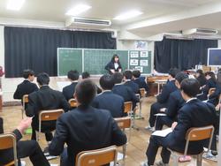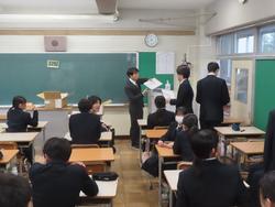 3月13日(金) 卒業式翌日、3年生の教室には誰もいません、下駄箱にも何も残っていません。当たり前の光景ですが改めて巣立ちを感じます。 朝練習の開始時間に卒業式会場の片付けが行われ、2年生のリーダーシップで素早く行えていました。紅白幕は入学式にも使用しますので、シワにならないよう丁寧に畳んでいました。ありがとう。 英語のLATの授業も今日で最後です。今日は、日本の学校とアメリカの学校の違いについて大きなジェスチャーで紹介していました。生徒の反応も英語です。授業の最後に学級委員から英語でお礼を伝えていました。楽しい授業をありがとうございました。 2年数学では、「二中の給食の残菜を減らすポスターを作成しよう」というテーマで栄養士からお借りした二中の残菜データーをもとに数学的視点で分析や方法をグループで考えていました。着目点が各班で違い興味深いプレゼンが行われていました。数学的視点をどう持てるか・・ |