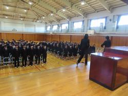 3月9日(月) 「今日の3年生 卒業まで3日」3時間目に1,2年生との合同練習を行いました。1,2年生の席の確認や所作の確認後、担任を先頭に1,2年生の前を通っての入場練習から行いました。ゆっくり歩く姿に緊張している様子が見られます。明日は予行練習が予定されています。 2年生の理科では、砂鉄を使った「磁界」の検証実験を行っていました。砂鉄で可視化した磁界から何がわかったのかな? 今日のリクエスト給食は、汁部門、2,3年第2位の「豚汁」でした。今日は寒かったので豚汁が体も心も温めてくれました。旬の果物を食べようポスターには、みかんが提供されるまでの工程が紹介されています。カットされたみかんには、食べやすいように皮と実の間に包丁で切り込みが入っています。手を汚さずひと口で食べられます。このひと手間に感謝です。 |