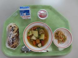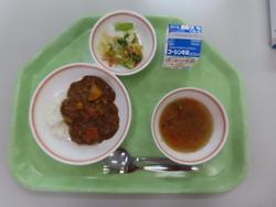 3月18日(水) 1年理科では、岩石の学習に取り組んでいました。石の大きさを伝えるのも工夫が必要です。2年男子体育は、サッカーです。チームで声をかけあい夢中にボールを追う姿はさわやかです。国語では、7組の作品から絵が訴えているメッセージを分析し班ごと発表を行っていました。各班の視点が違いとても興味深い発表になっています。音楽はリズム打ちの学習です。クラス全員が揃うと迫力も感じられます。 今年のリクエスト給食も今日で最後です。汁部門1年2位、2年3位の「コンソメスープ」、小皿部門1年・2年2位の「ポテチサラダ」でした。そしてメインは給食の王様「ポークカレー」です。大盛を選んだ生徒も多くいました。明日は給食ラストデーです。 |