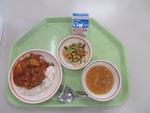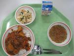今日から給食が始まりました。今日のメインはポークカレーです。生徒達もおいしそうに食べていました。