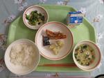 ☆今日から1年生の給食が始まりました。お盆をひっくり返すこともなく、スムーズに配膳を進めていました。みなさん美味しそうに食べていました。