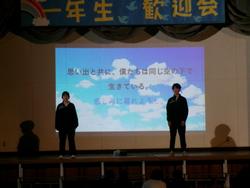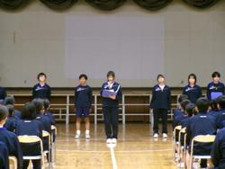 今日は、歯科検診が行われました。午後からは、新入生歓迎会が行われました。プラカード係を先頭に、1年生が入場し、生徒会本部によるオリエンテーションと劇から会は始まりました。その後、2年生の発表、3年生の発表が続きました。両学年とも創意工夫した素敵な発表を披露してくれました。体育館の装飾もとても綺麗で1年生への歓迎の気持ちが詰まっていました。上級生の後は、お礼の発表として1年生の発表でした。1年生らしい元気いっぱいの発表でした。部活動発表の後(様子は明日掲載いします。)、全校で校歌斉唱、生徒会長の話と進み、退場となりました。1年生の皆さん、歓迎会はどうでしたか?今日から部活動の仮入部も始まりました。少しずつ、確実に三中の絆が深まっていることが感じられます。生徒の皆さん、素敵な会をありがとうございました。