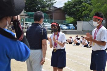 今年度久しぶりに会長から赤組、白組のリーダーに直接メダルをかけていただくことができました。ありがとうございました。