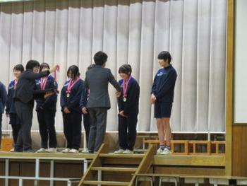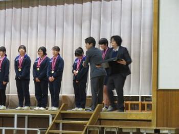 3年生を送る会でのメダル授与