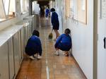 ○ 清掃活動・・・出席確認後、朝の清掃活動を実施しております。生徒は自分の分担場所に移動し、グループ毎に掃除をします。現在は清掃活動は授業の後に行っています。この時間で健康観察・手洗いうがいなどの時間としています。