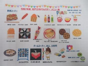 PTAふれあいバザーメニュー表 たくさんの飲食コーナーやゲームコーナーがあります。皆さん、お楽しみに!