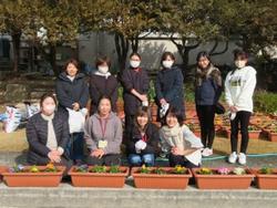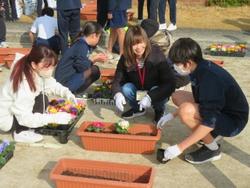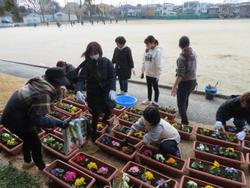 今日は、PTAの文化部の皆さんと本部役員の皆さんで花植えを行っていただきました。色鮮やかなパンジーとジュリアンを3年生と一緒にプランターに定植しました。大切に育てて卒業式や入学式に飾りたいと思います。お忙しいところありがとうございました。