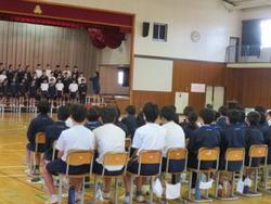 今日は一日、合唱祭の学年リハーサルです。本番を想定して、移動の仕方と発表の流れを確認しました。3年生のリハーサルでは、「中学校生活最後の合唱祭です!ぜひ自分の殻を破ってください!」と大竹先生から話がありました。残り1週間、学級の気持ちを一つにした素晴らしい歌声を期待しています。給食では、黒蜜きな粉の白玉だんごが登場。今日は中秋の名月です。