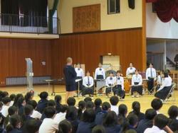 11日(土)に山形県で行われる東日本大会に出場する吹奏楽部を激励するため、6校時に壮行会を行いました。「全国大会に出場するのは三中史上2回目です。当たり前のことを積み重ねてここまできました。」と大竹先生から挨拶がありました。迫力ある演奏は、体育館中に響き渡り、生徒も聞き入っていました。吹奏楽部の皆さん!自信を持って演奏してきてください!