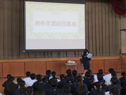 1年生は明日、お台場・有明方面へ校外学習に行きます。本日は5時間目に前日集会を行い、各部会長からの話や、最終確認を行いました。真剣に話を聞く姿が大変立派で、明日は実りのある学習ができると期待ができました。気をつけていってらっしゃい!!