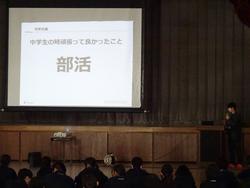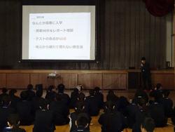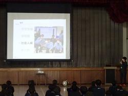 キャリア教育の一環として、2年生は出光興産の関さんのお話を聞きました。現在の仕事の内容や、学生時代に頑張ったことや頑張らず後悔したことなどたくさんのお話をしてくださいました。学生時代に頑張ったことは、働く際にも強みとすることができたという話は、2年生にとって励みになったと思います。また、目標を持ち、それに向けて努力することの大切さを感じられたと思います。将来の自分のために、頑張れ2年生!!