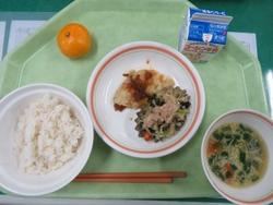 今日の5校時は1年生は校外学習の新聞づくり。写真を見ながら思い出話に花が咲いていました。2年生は道徳の授業。大竹先生の美声の範読で集中していました。給食は、白身魚の中華ソースがけ、のりサラダ、にら卵スープ、みかんでした。とても美味しかったです。