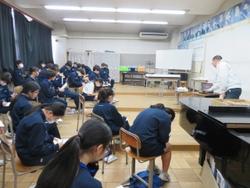 朝は本当に冷えますね。1年生の音楽を覗くと鑑賞でした。CMでも流れている曲でみんな楽しそうでした。2年生の理科は電流、3年生は天体の単元。積極的に質問していて集中していました。給食は、親子丼、のりサラダ、のっぺい汁。ボリューム満点の献立でした。