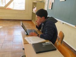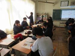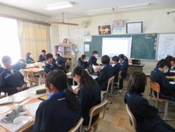 2年生の女子体育は長縄。驚異的なスピードの8の字跳びでした。入るタイミングが素晴らしいです。2年道徳は「身近にひそむネット依存」。オンラインで班ごとに意見を交わし、発表していました。冬休みは、自由になる時間が増えますが、スマホ・ゲームの使い方は十分気をつけてください。