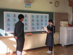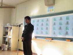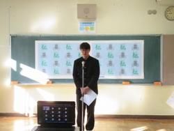 今日は体育館工事のため、オンラインでの終業式となりました。表彰では、社会科や国語の表彰に加え、吹奏楽部の部長から全国大会までの取り組みについて思いを伝えてくれました。2学期を振り返って3学年代表からは、「互いに協力して、胸を張れる三中を作り上げていこう」という1.2年生に向けた素晴らしいエールがありました。頼もしい言葉です。今学期の取り組みを新年に生かせるよう、計画的な冬休みを送ってほしいと思います。皆さん、良いお年をお迎えください。